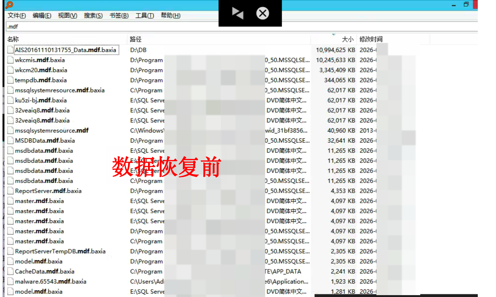被.baxia勒索病毒加密后的数据恢复案例: